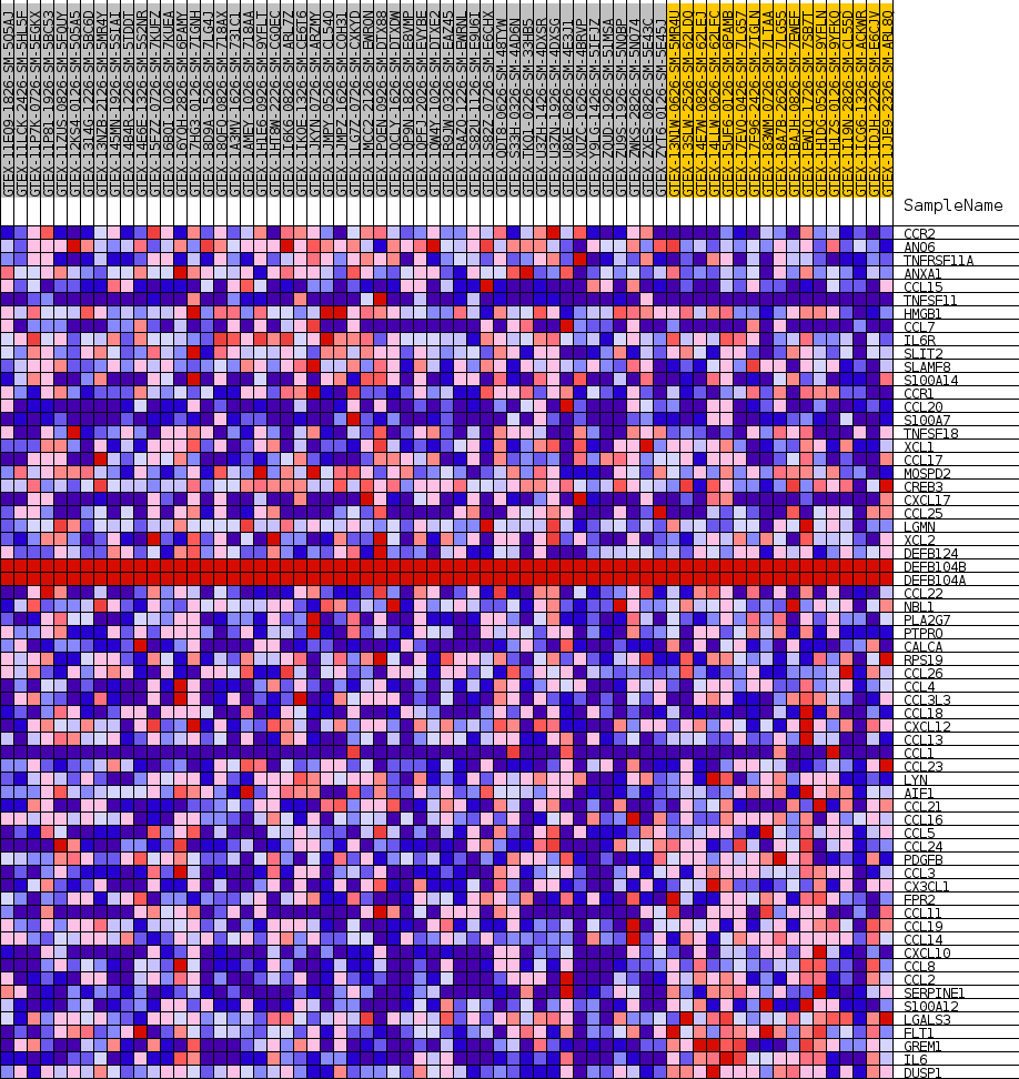 | 36 | CCL3L3 | NA | 44612 | -0.071 | -0.4561 | Yes |